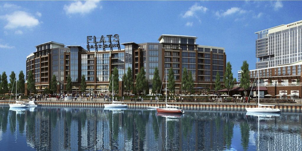 Phase Two of the multi-use redevelopment of Cleveland's "Flats", a languishing historical, former entertainment district along the Cuyahoga River.